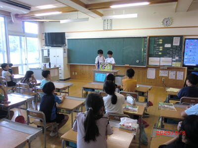 今日の昼読書時間は、図書委員が各学級に入って、読み聞かせを行いました。選んだ本を、じっくりと、しっかりと読んでいました。聞いている友達も、静かに聞き入っていました。