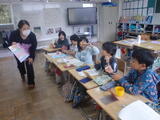 3年生以上は外国語の学習がありますが、1、2年生は外国語活動として英語に慣れ親しむ活動をしています。ALTのフィリップ先生と一緒に「あいさつ」について、話したり聞いたりして活動しました。